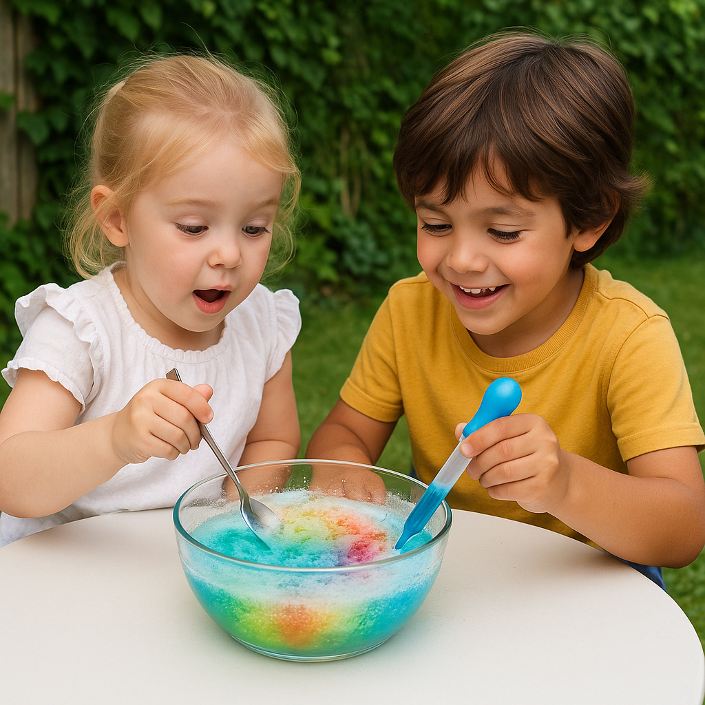 Ob drinnen oder draußen: Dieses Sprudelexperiment sorgt für leuchtende Kinderaugen.