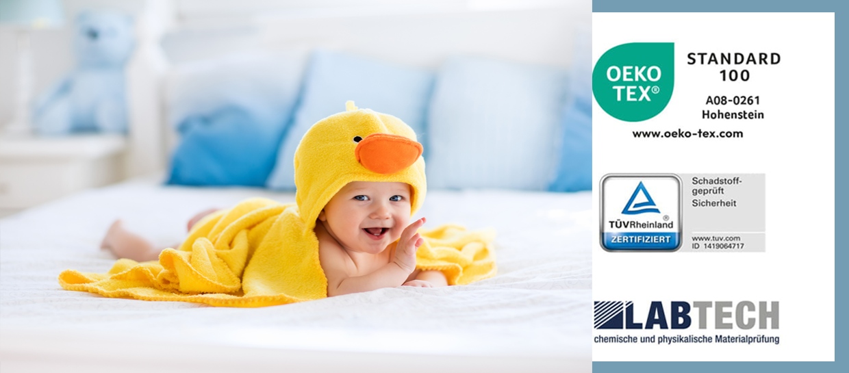 Geprüft auf Schadstoffe (OEKO-TEX®, A08-0261 Hohenstein HTTI, oeko-tex.com/standard100).
